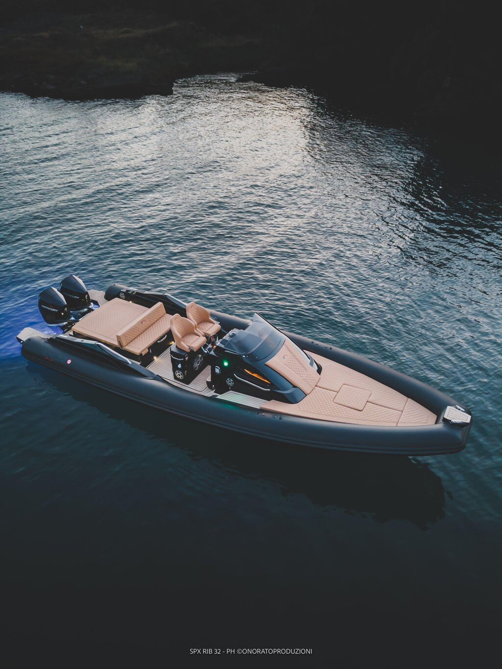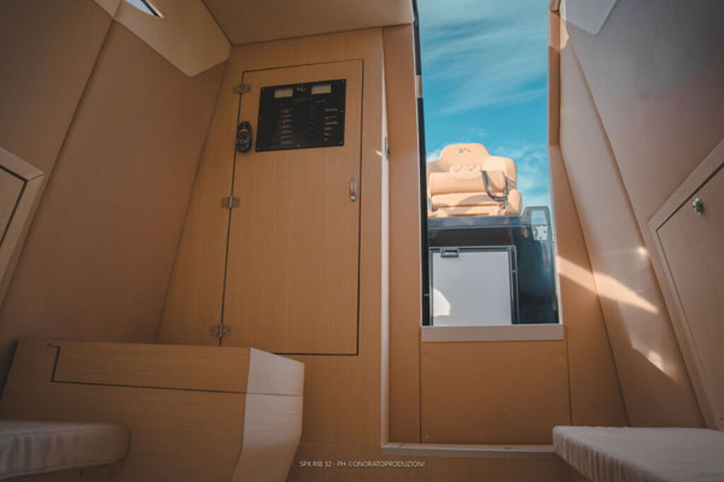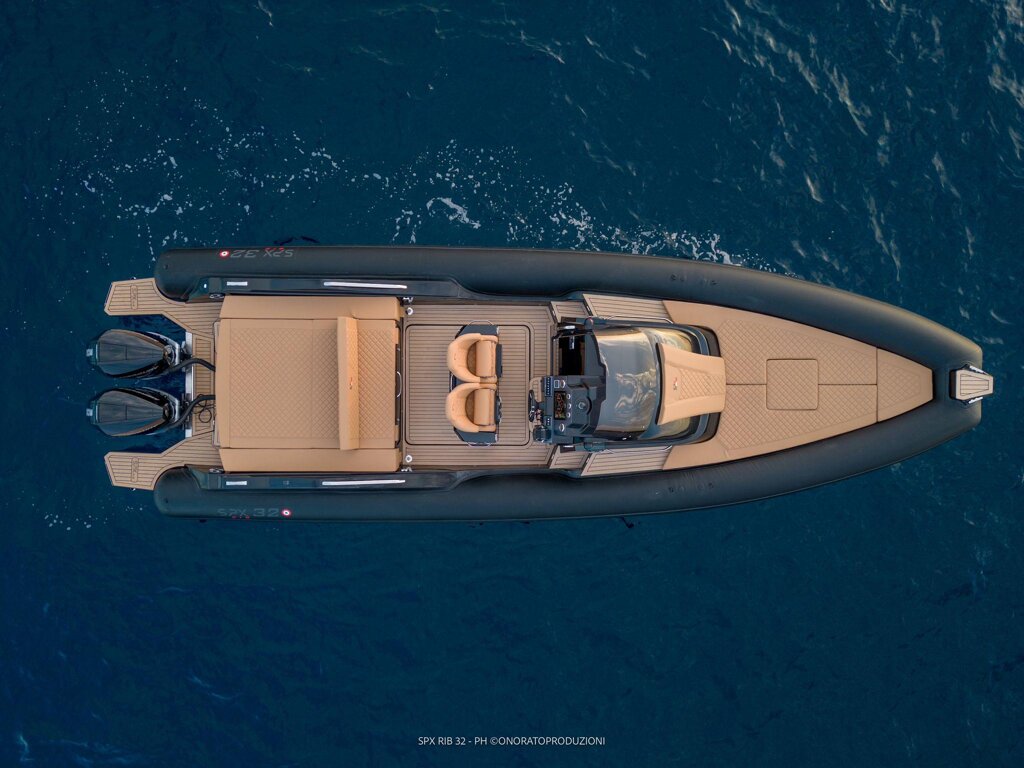 Il gommone Spx Rib 32 Sport, lungo fuori tutto 9,95 mt. e largo 3,40 mt., omologato CE in cat. B, può trasportare fino a 16 passeggeri. Costruito con le migliori materie prime, esso si distingue per la sua linea pura e innovativa, e soprattutto per una minuziosa articolazione degli spazi e per la cura di ogni minimo dettaglio, quali si trovano solo in imbarcazioni di categoria superiore.