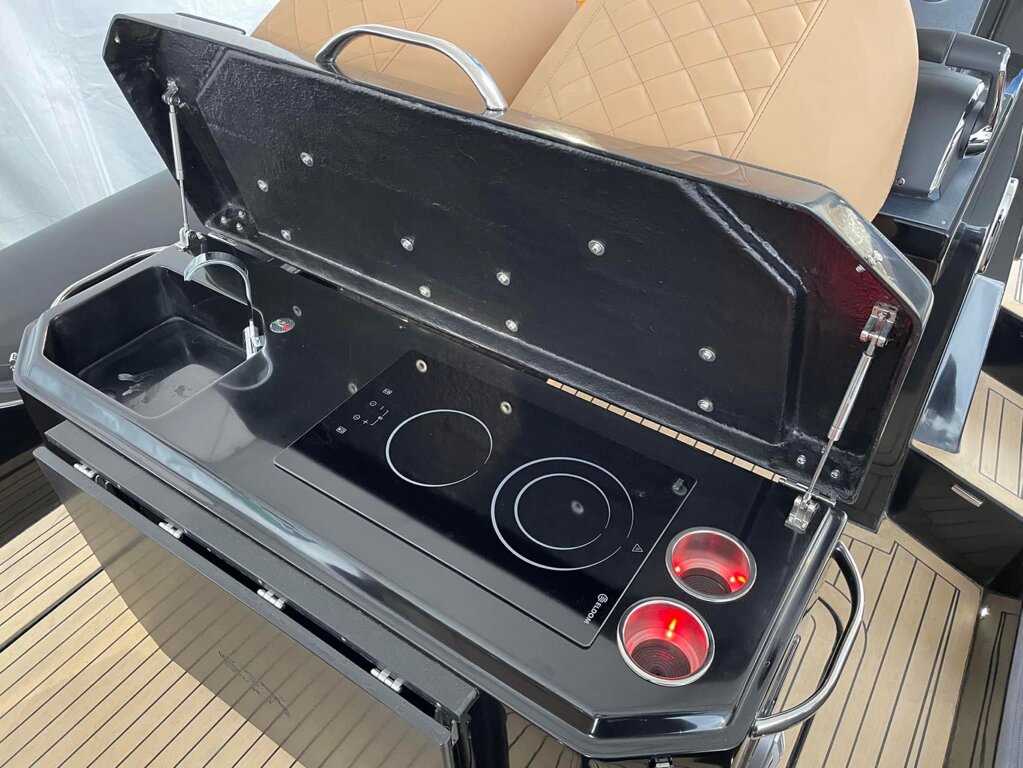 Telo copri gommone, Telo copri consolle e copriseduta, Tendalino telescopico parasole a 3 archi in acciaio 316, Roll bar in acciaio Aisi 316 L, Allestimento cabina di poppa, Prua Full teak sintetico, T-Top con luci a led e predisposizione casse acustiche, Tendalino su T-Top con N°2 pali in carbonio tenda per campeggio nautico, Inverter 220V, Boiler acqua calda 15lt, Telecomando verricello, Strumento da 9/12 pollici, Gps, chartplotter, ecoscandaglio, Autopilota, Interfaccia motori, Elica di prua, Display conta catena, Luci subaque, Piano cottura a induzione, Tv da 21.5" con dvd e antenna, Vhf, Punta piedi, N°21 Luci full led, Personalizzazione tubolari carbon/impression/perlage, Cuscineria sun tropical, N°2 Prolunga prendisole di poppa, Persolanizzazione gelcoat coperta, Personalizzazione consolle/seduta/plancette gelcoat lucido, Personalizzazione gelcoat carena, Asta sci, N°2 passamano di risalita in acciaio inox 316, Bitte a scomparsa in acciaio inox 316 N°2, Hi-fi Hertz con monitor lcd con 6 altoparlanti + amplificatore , N°2 portabicchieri, Antivegetativa carena, Termocopertura da viaggio.